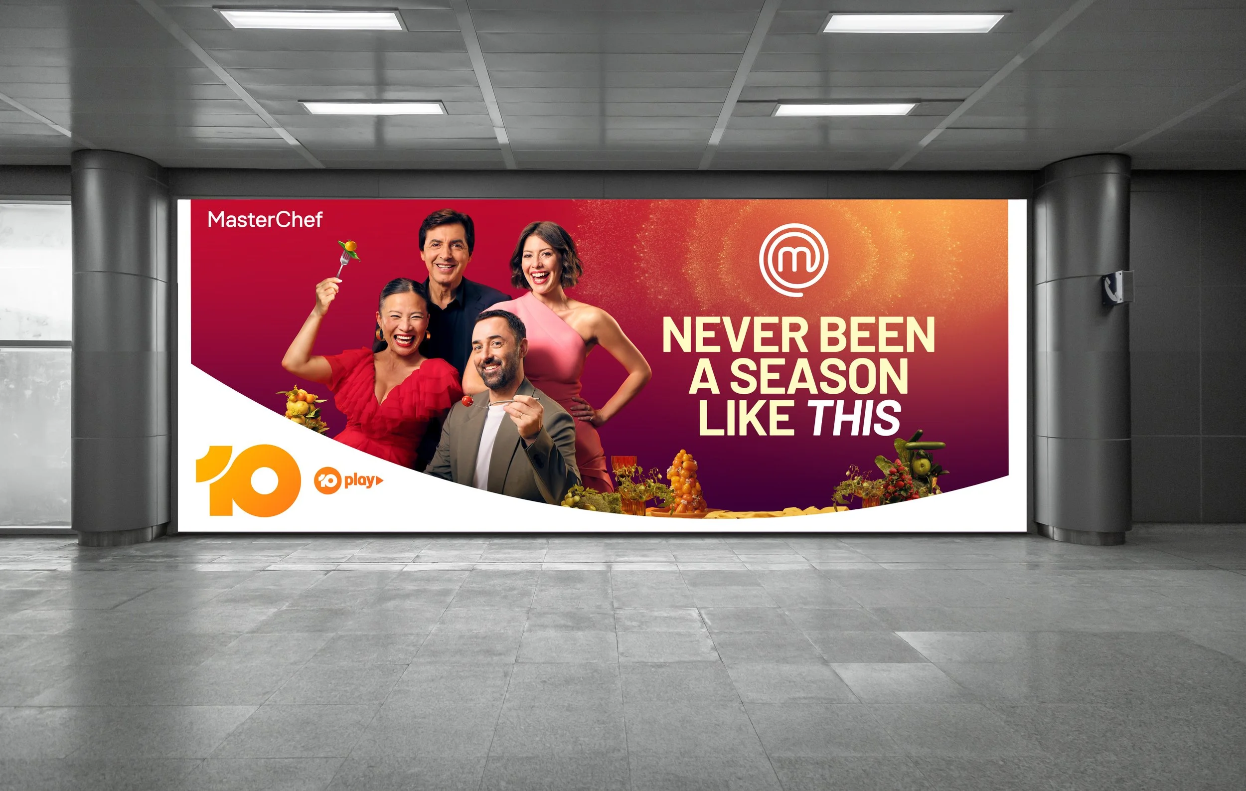 I was part of the creative team behind the Season 16 campaign for MasterChef Australia, contributing from initial concept development through to final rollout. My role involved designing and adapting artwork across a range of formats including large-scale billboards, TV pause ads, digital banners, and more. I ensured the creative was cohesive, visually impactful, and aligned with the overall campaign strategy across all touchpoints.